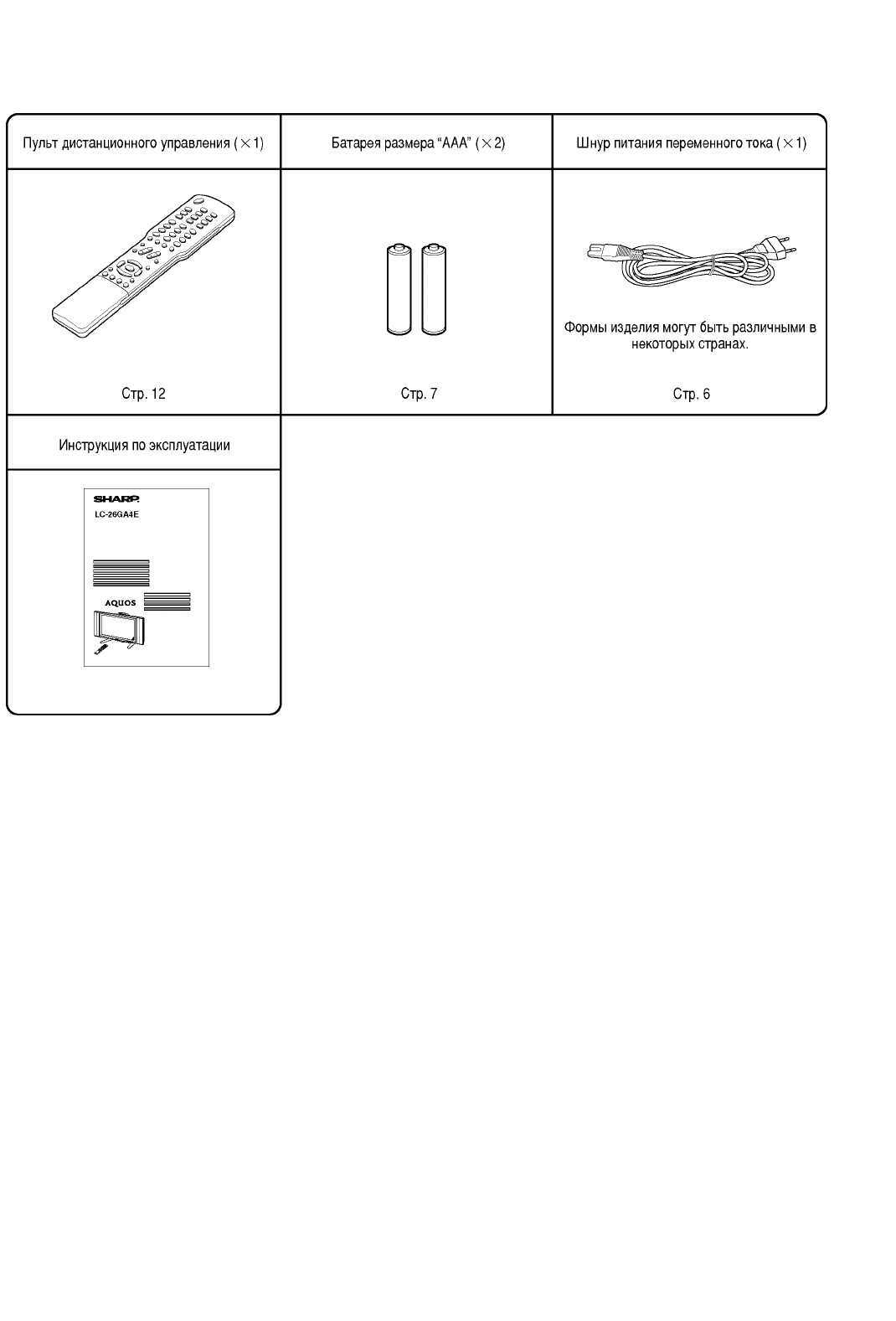 Убедитесь, что к изделию прилагаются следующие принадлежности.