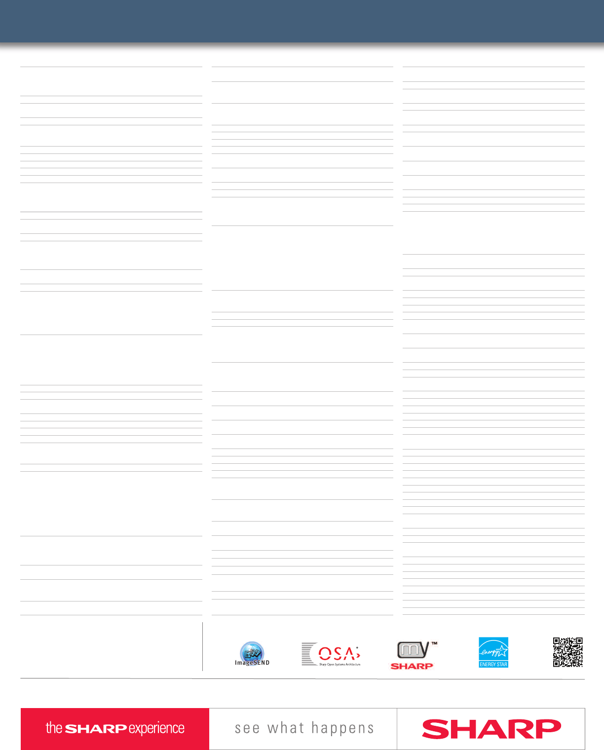 Design and specifications subject to change without notice. Sharp, Sharp OSA, Sharpdesk, My Sharp, and all related trademarks are trademarks or registered trademarks of Sharp Corporation and/or its affiliated companies.