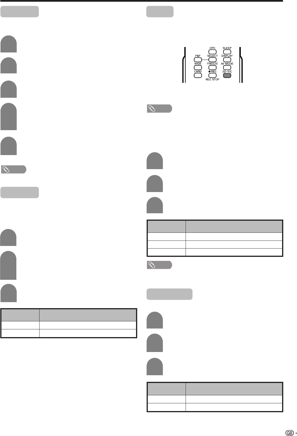 Press 3D-Y/C to switch the 3D-Y/C function on and