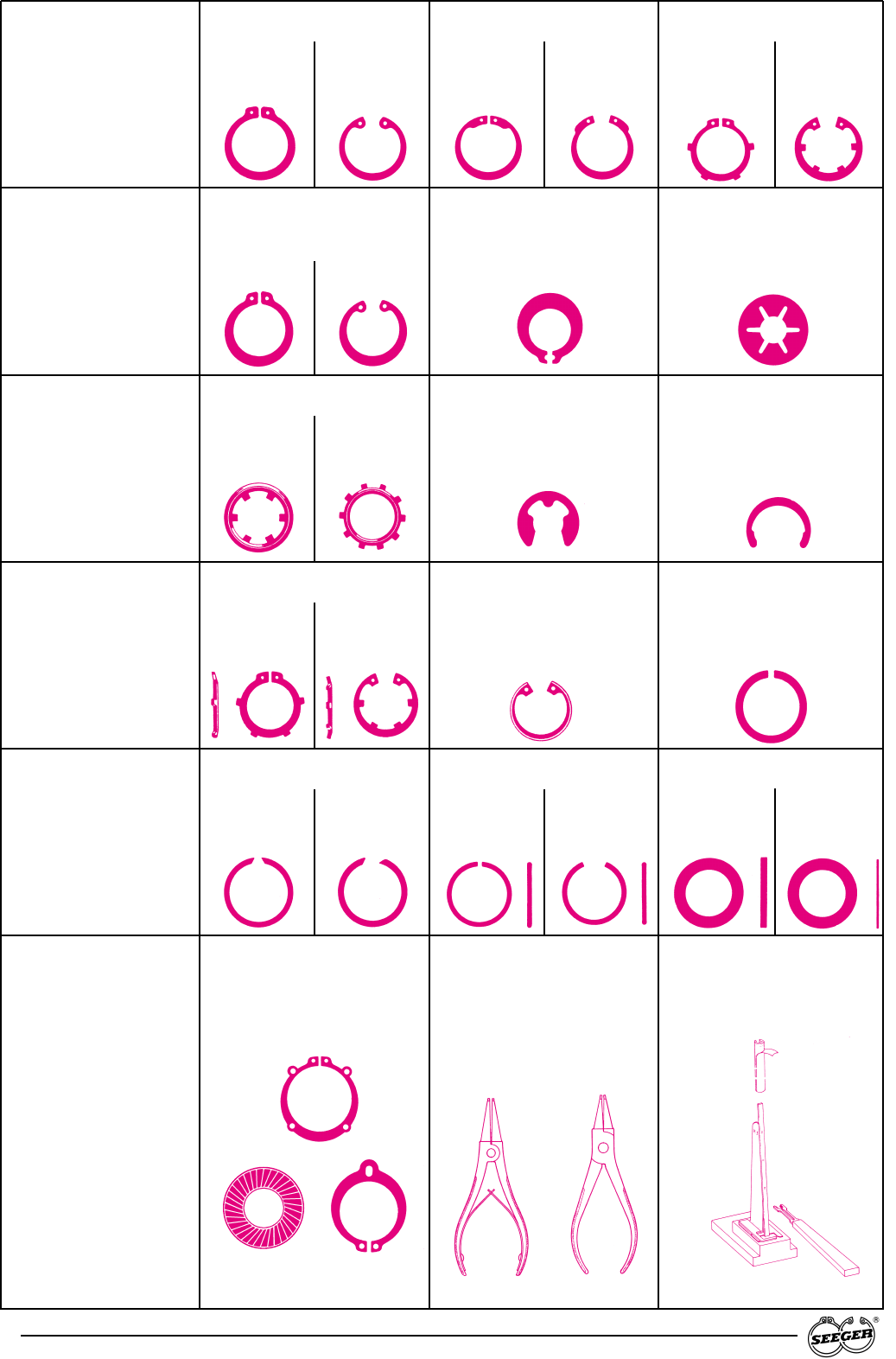 Bezeichnung / Designation Seegerring / Seeger rings DIN 471/472 Seeger-V-Ringe / Seeger V rings Seeger-K-Ringe / Seeger K rings