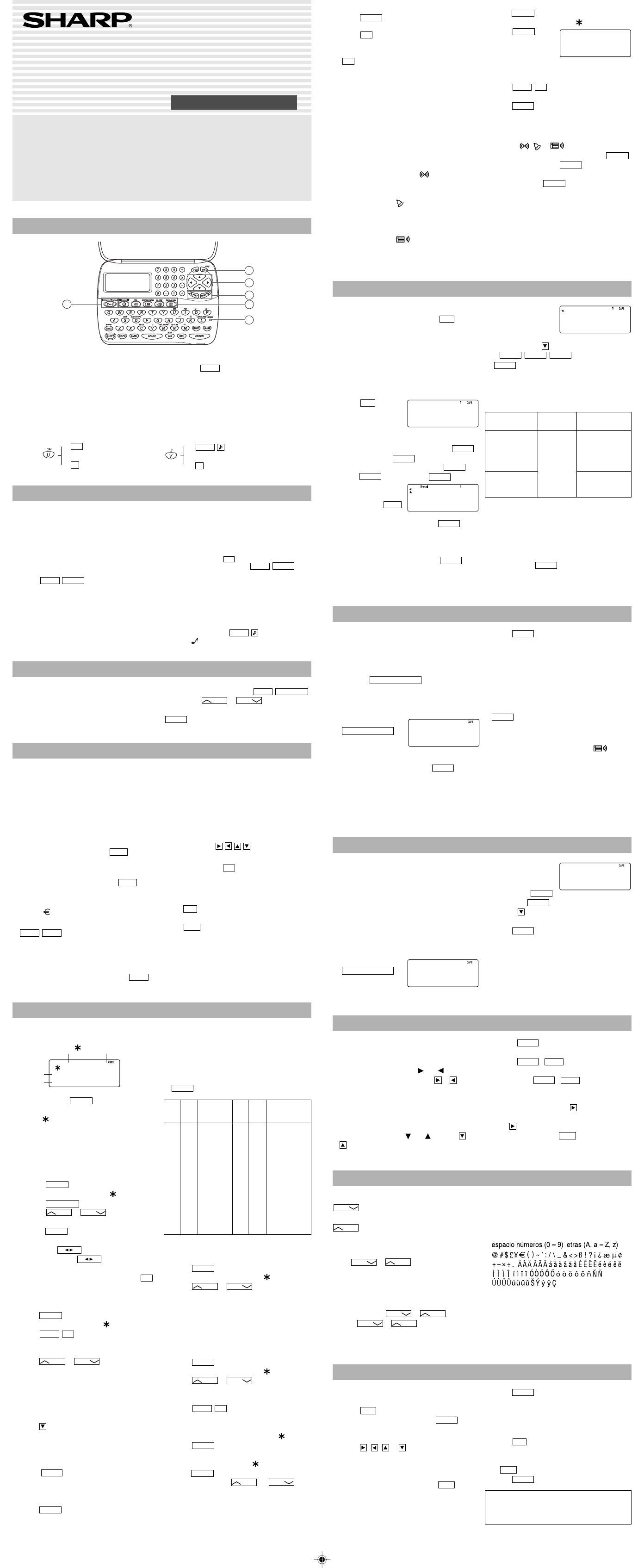 espacio, – y F y P en el modo de teléfono) se