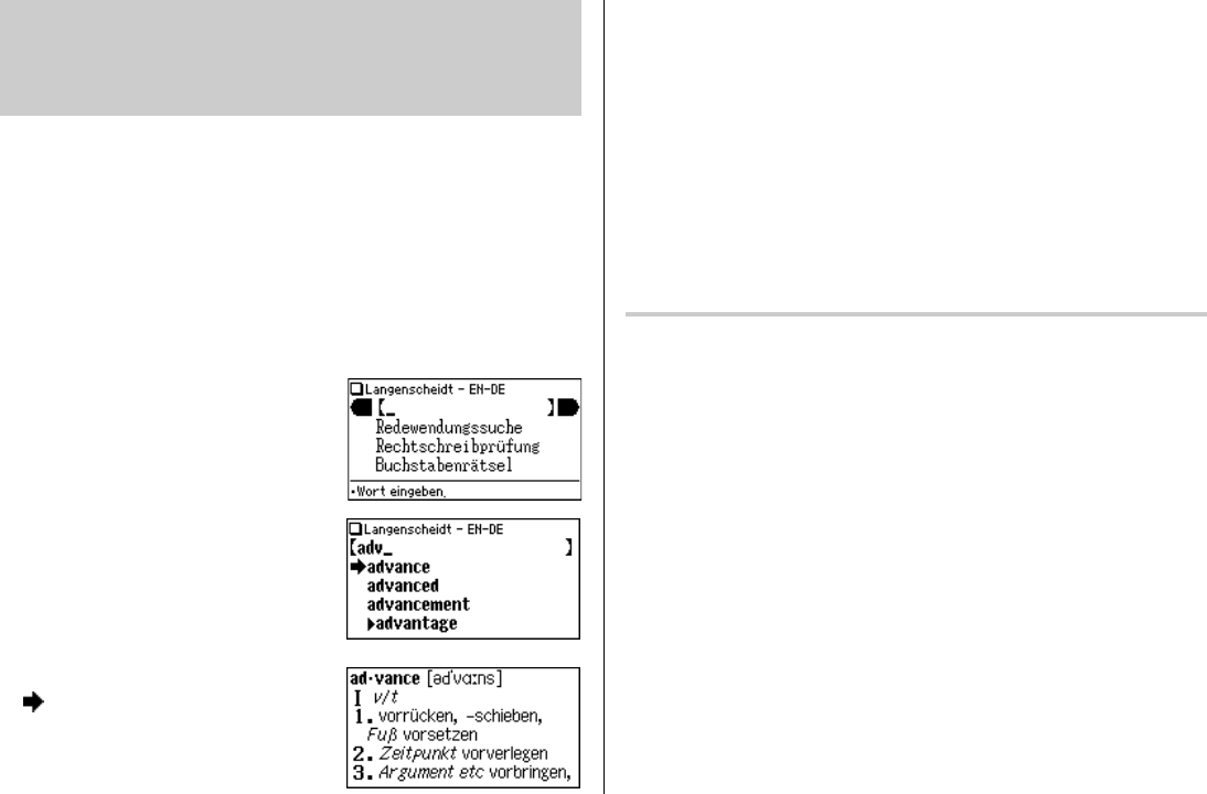 • Um nach einem neuen Wort zu suchen, geben Sie dieses einfach ein oder