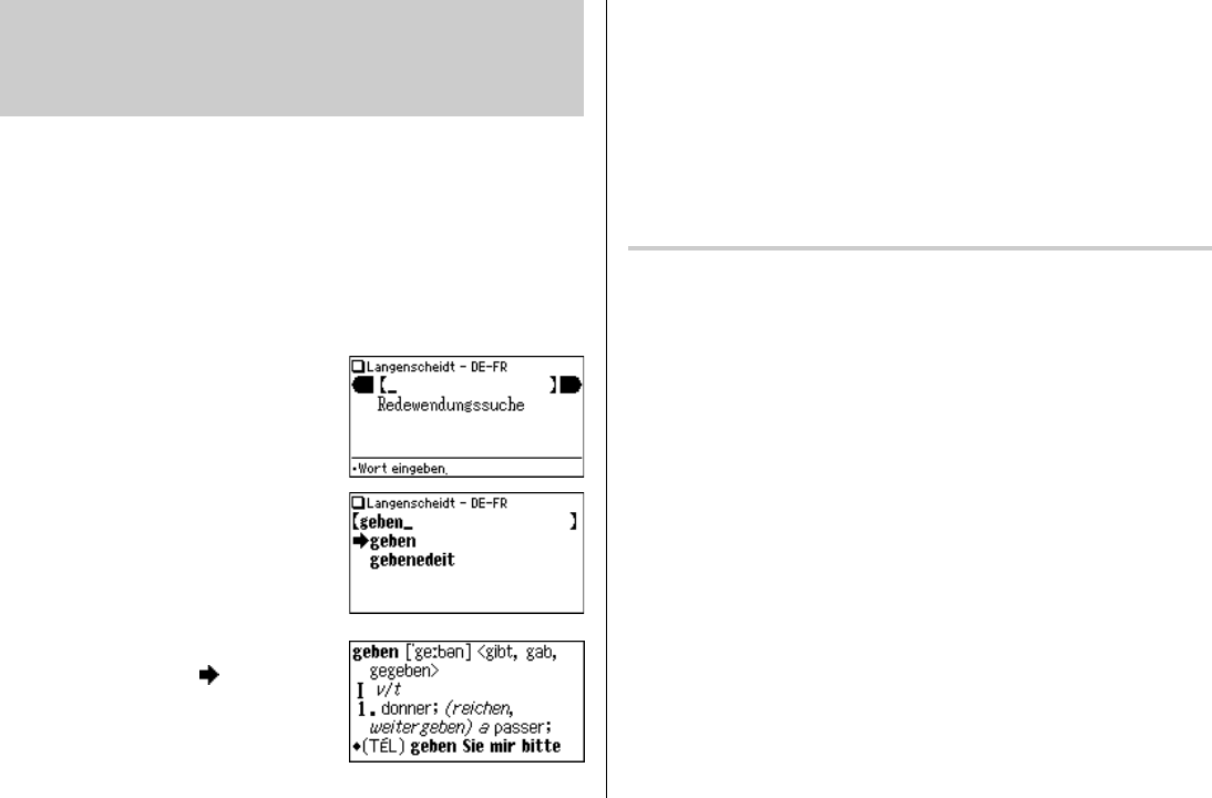 • Um nach einem neuen Wort zu suchen, geben Sie dieses einfach ein oder