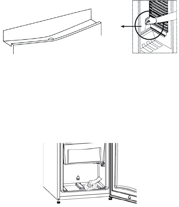 • Kanálek výparníku a otvor pro odvod vody (v zadní části police pro čerstvé potraviny)