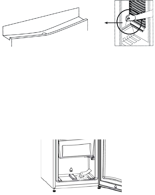 • Siekiant išvengti vandens kaupimosi, šaldytuvo kameros apačioje vandens