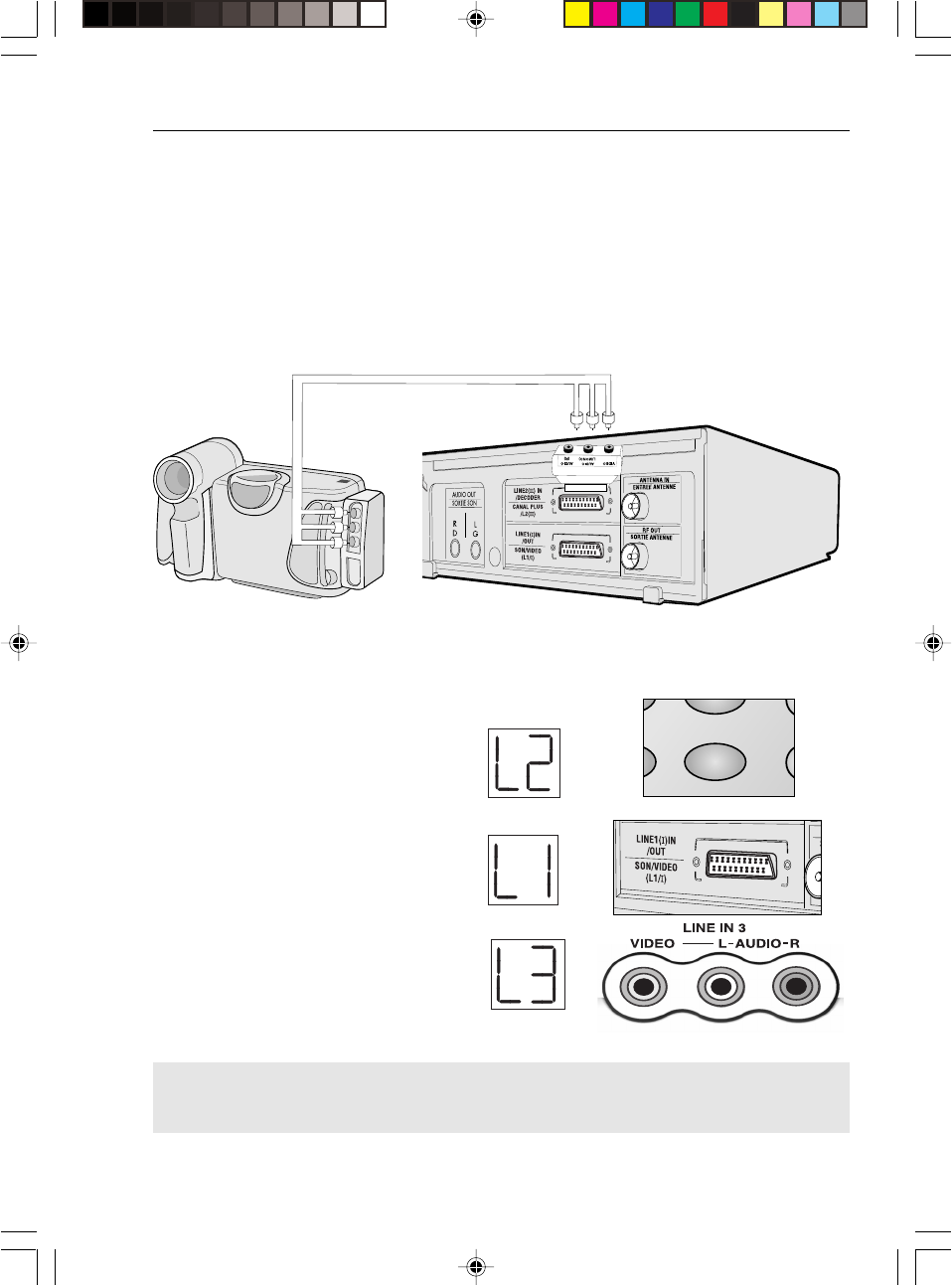 Příklad: nahrávání z videokamery připojené na vstup LINE 1 IN/OUT videorekordéru: