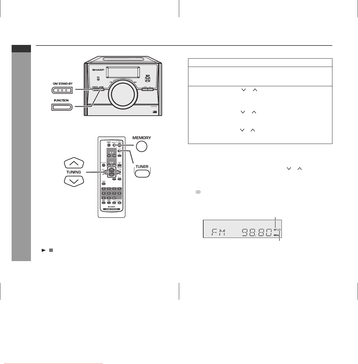 Press the TUNER button to select stereo mode and “ST” indicator