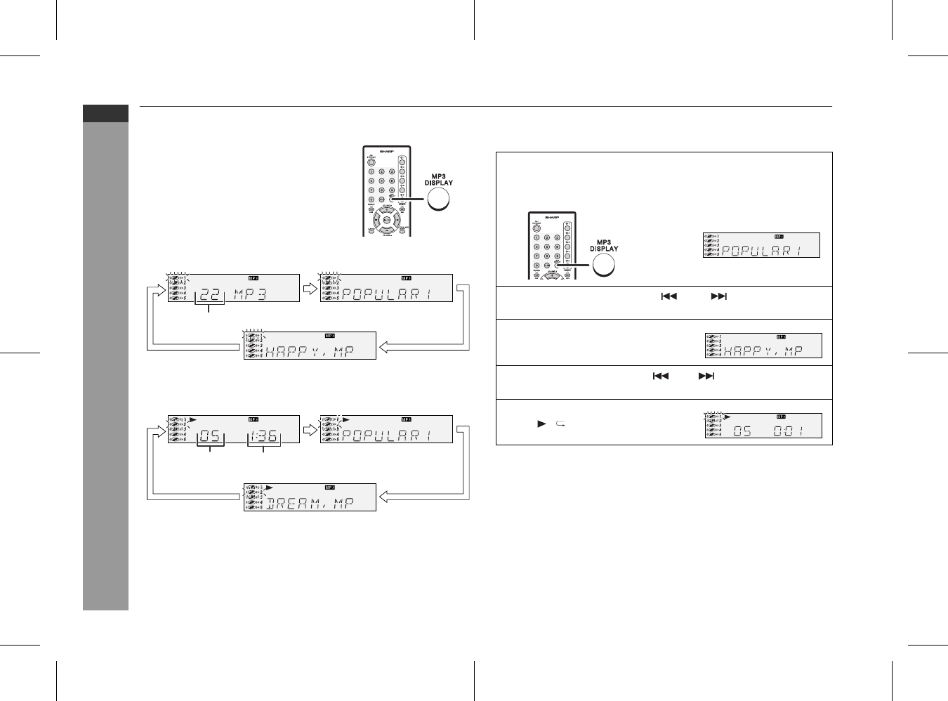 art die MP3 DISPLAY-Taste drücken.