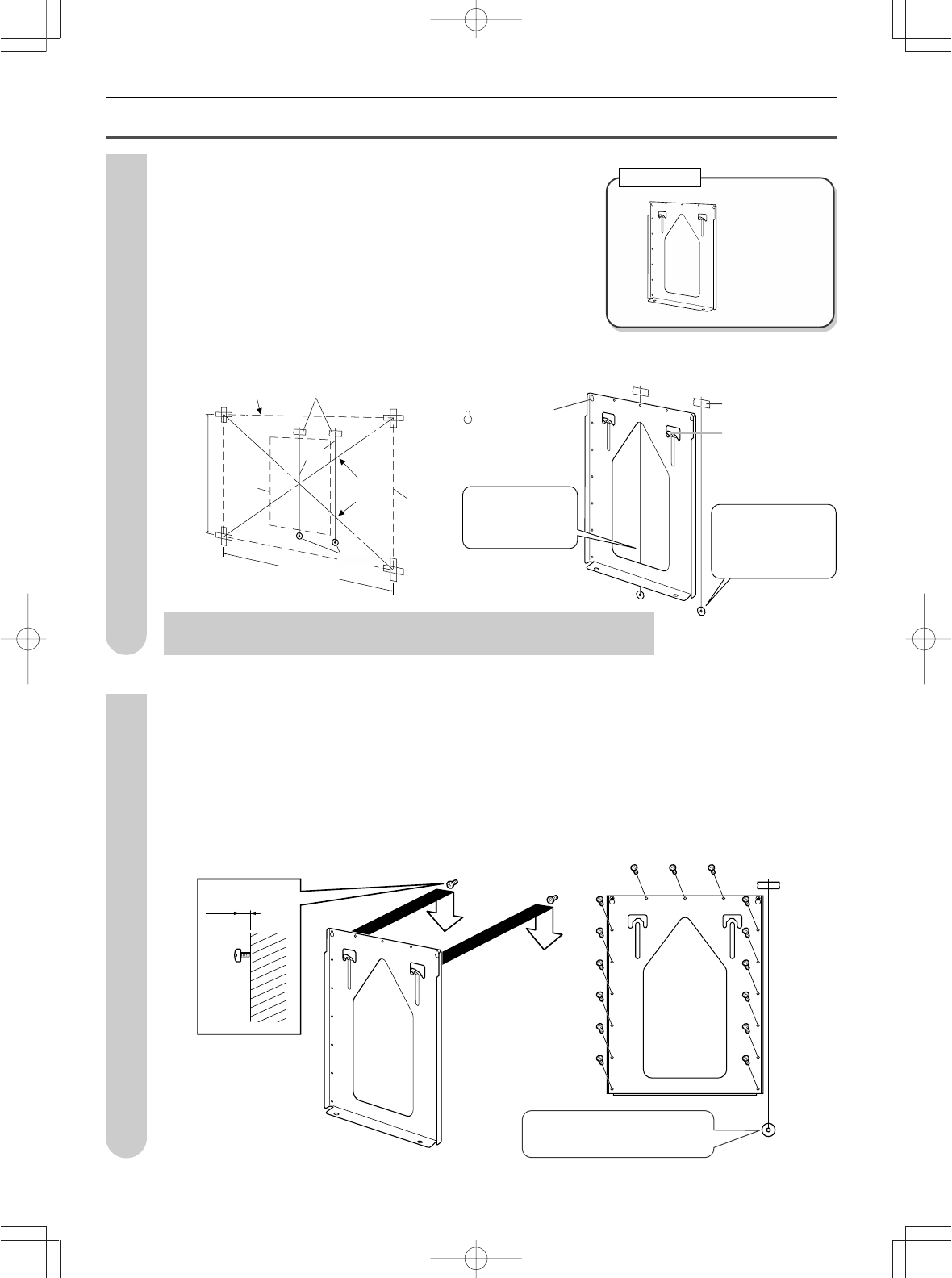 mm dia. × 2 screws) in the screw hole positions marked on the wall. At this time, the screw