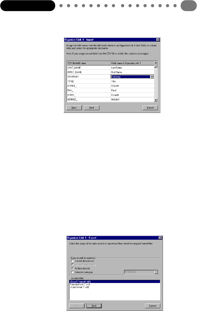 21) Question: How to transmit the data from Organizer Link 4into MS Outlook97.