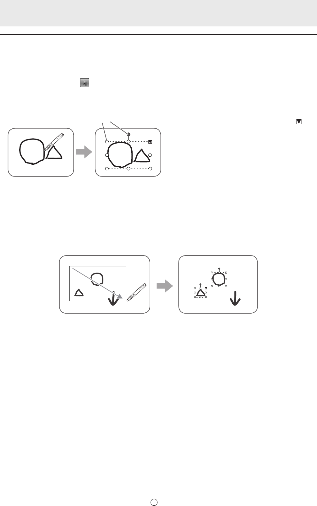 En spéciant une zone par glisser, vous pouvez sélectionner plusieurs objets à l’intérieur de la zone. (Les objets qui ne sont pas