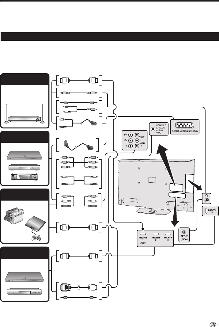 The TV is equipped with the terminals as shown below. Find the cable corresponding the TV’s terminal and connect