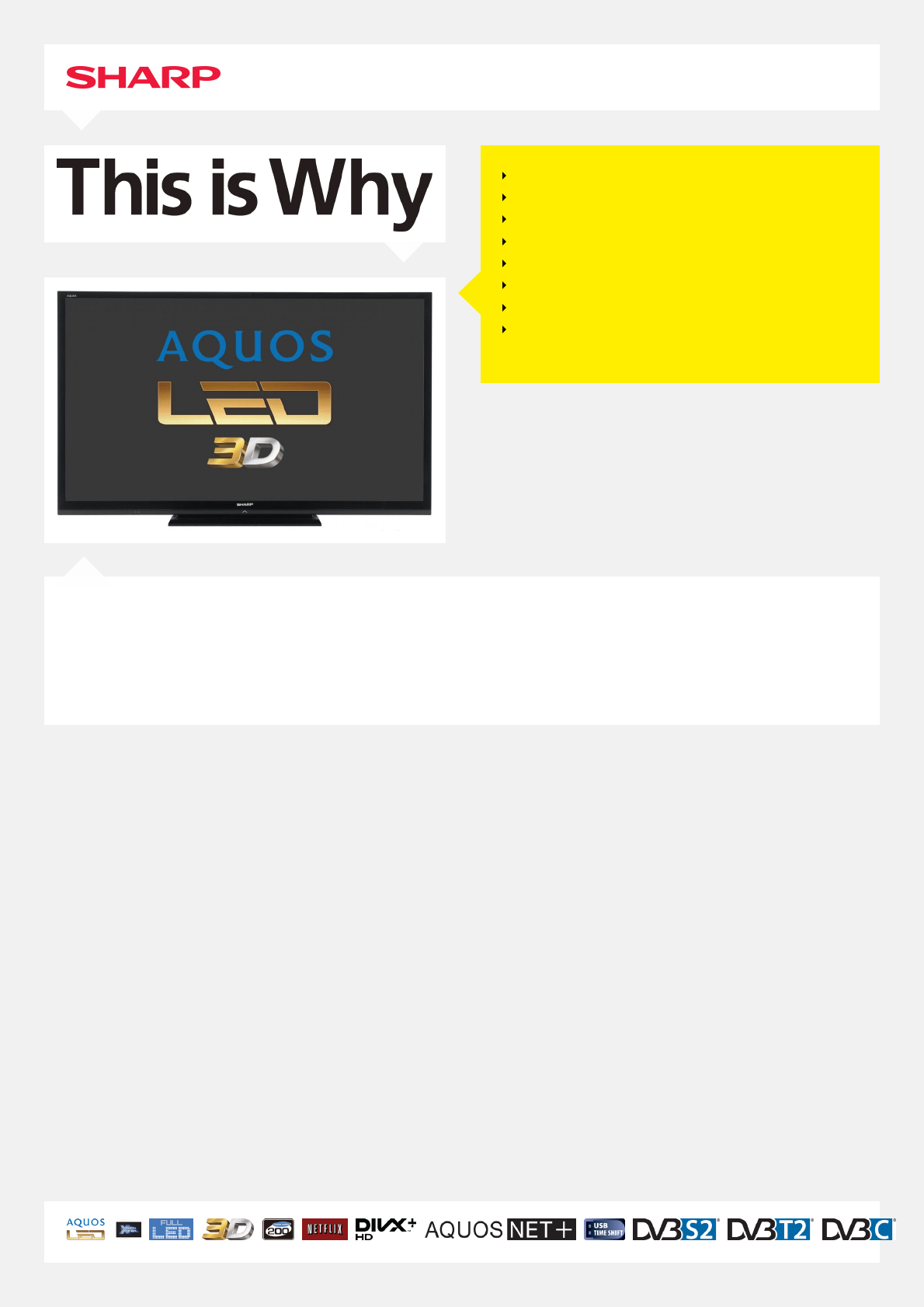 quality with efficiently low power consumption. This TV is 3D capable and with AQUOS NET+ means you have access to your